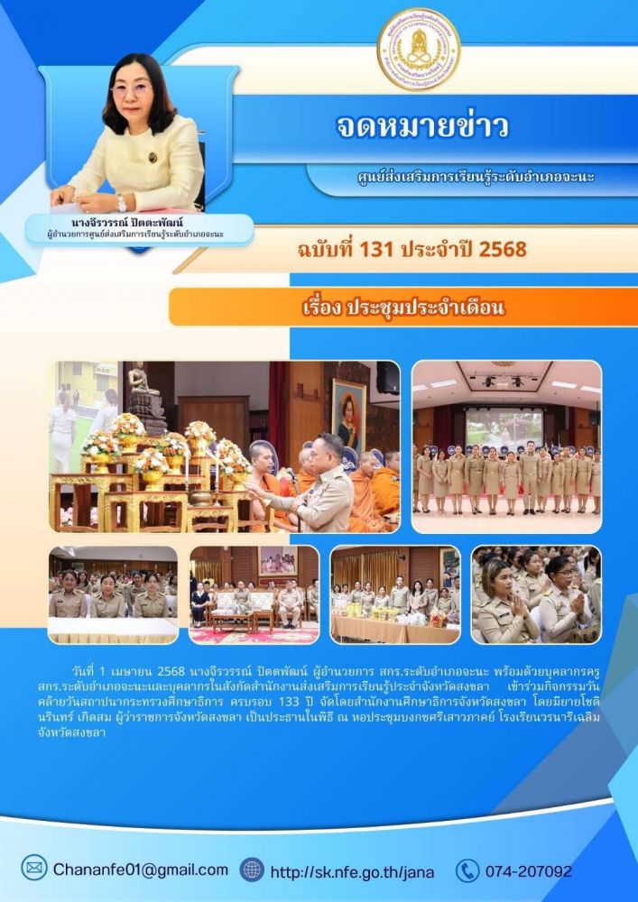 วมต้อนรับและเเสดงความยินดีกับนางสุจินต์ ศรีวิสุทธิ์ รองผู้อำนวยการสำนักงานส่งเสริมการเรียนรู้ประจำจังหวัดสุราษฎร์ธานี เนื่องในโอกาสย้ายมาดำรงตำแหน่งรองผู้อำนวยการสำนักงานส่งเสริมการเรียนรู้ประจำจังหวัดสงขลา 13 / พ.ย. / 2568