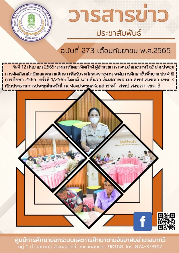 ผู้อำนวยการ กศน.อำเภอนาทวี เข้าร่วมประชุมการคัดเลือกนักเรียนและสถานศึกษา เพื่อรับรางวัลพระราชทาน ระดับการศึกษาขั้นพื้นฐาน ประจำปีการศึกษา 2565 ครั้งที่ 1/2565