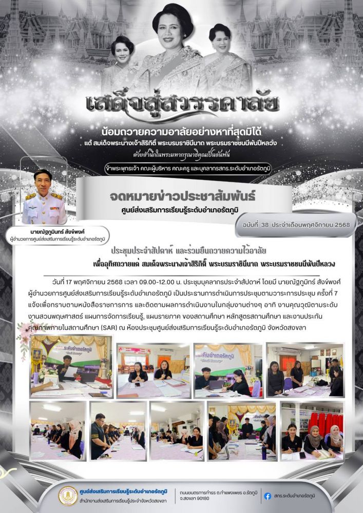 วันที่ 17 พฤศจิกายน 2568 เวลา 09.00-12.00 น. ประชุมบุคลากรประจำสัปดาห์ โดยมี นายณัฐภูมิทร์ สังข์พงศ์