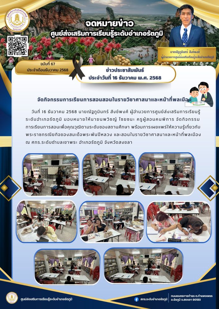 จัดกิจกรรมการเรียนการสอนวิชาศาสนาและหน้าที่พลเมือง 21 / ธ.ค. / 2568
