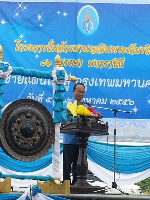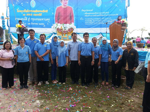 นายดนลาเต๊ะ อิแอ ผู้อำนวยการศูนย์ กศน.อำเภอสะบ้าย้อย ได้มอบหมายให้นางกุลชญา กุลถิรวงศ์ ตำแหน่งครูอาสาฯ ปอเนาะ และคณะครู กศน.อำเภอสะบ้าย้อย เข้าร่วมพิธีเปิดโครงการปั่นจักรยานเฉลิมพระเกียรติ ๘๑ พรรษา มหาราชินี ปี ๒๕๕๖ อำเภอชายแดนใต้ สู่กรุงเทพมหานคร ณ ฟาร์มตัวอย่างสมเด็จพระนางเจ้าสิริกิติ์พระบรมราชินีนาถ บ้านควนหรัน หมู่ที่ ๒ ตำบลเปียน อำเภอสะบ้าย้อย ในที่ ๕ สิงหาคม ๒๕๕๖ เวลา ๐๖.๔๕ น. เพื่อเฉลิมพระเกียรติสมเด็จพระนางเจ้าสิริกิติ์พระบรมราชินีนาถ ๑๒ สิงหา มหาราชินี ระยะทาง ๑,๐๐๐ กิโลเมตร จำนวนนักปั่น ๘๑ คน