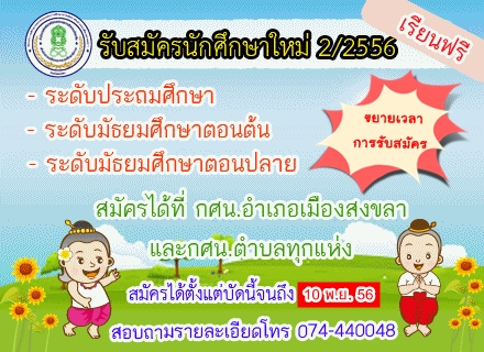 กศน.อำเภอเมืองสงขลา ขยายเวลาการรับสมัครนักศึกษาใหม่ 2/2556