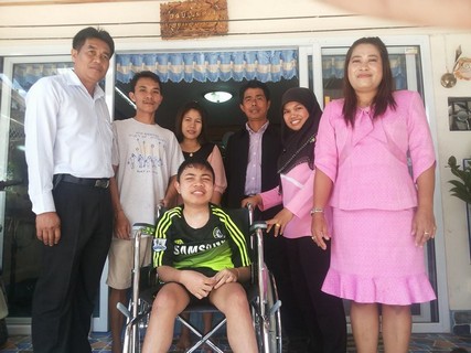 ครูผู้สอนคนพิการ มอบรถวีนแชร์ให้กับนักศึกษาคนพิการ ในพื้นที่ที่รับผิดชอบ วันที่ 11 กุมภาพันธ์ 2557