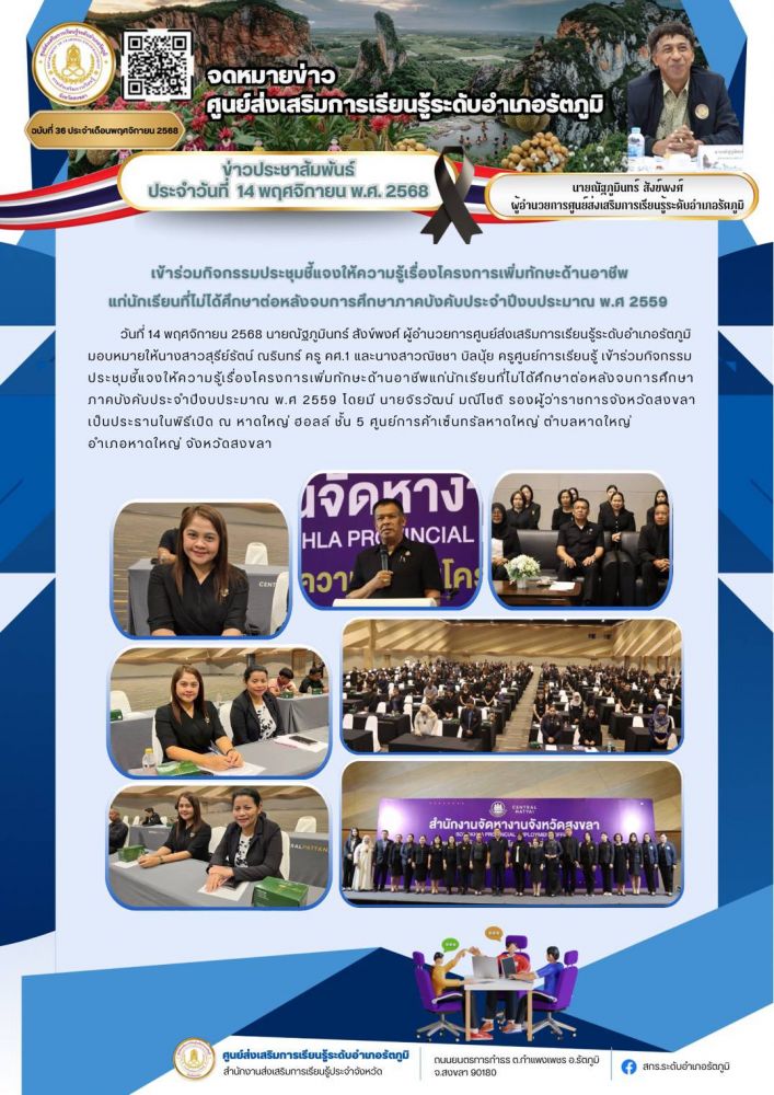 เข้าร่วมกิจกรรมประชุมชี้แจงให้ความรู้เรื่องโครงการเพิ่มทักษะด้านอาขีพแก่นักเรียนที่ไม่ได้ศึกษาต่อหลังจบการศึกษาภาคบังคับประจำปีงบประมาณ พ.ศ 2559 17 / พ.ย. / 2568